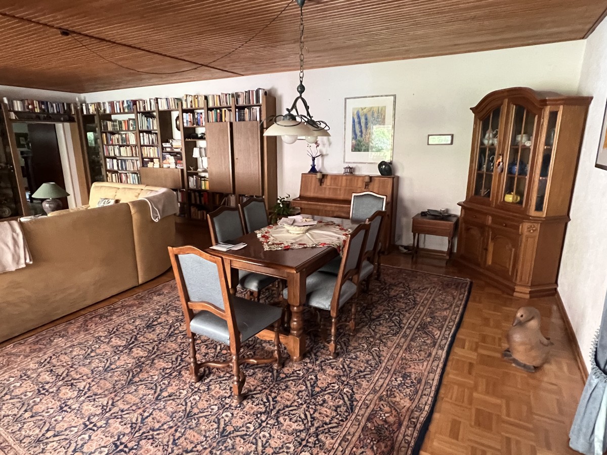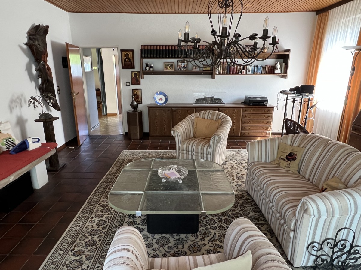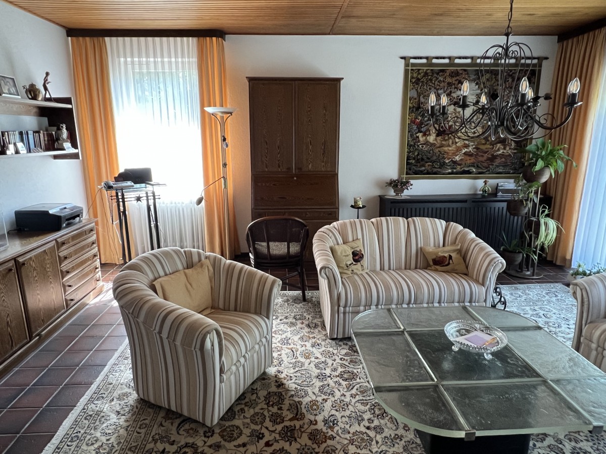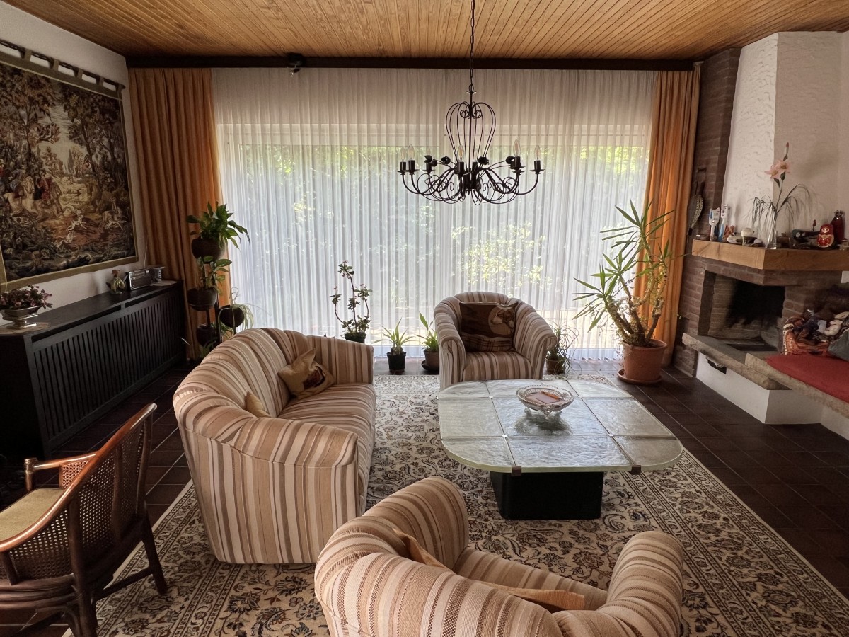 Das uneinsehbare, rund 1.416 m² große Grundstück, bietet eine naturnahe Umgebung und einen sehr großen Garten. Das ganze Gelände hat eine süd-westliche Ausrichtung und ist herrlich sonnig. Die großzügigen Räume sorgen dafür, dass sich die gesamte Wohnfläche über 210 m² erstreckt und ausreichend Platz mit sich bringt. Als Fußbodenbelag ist im Haus überwiegend ein sehr ansprechendes Stäbchenparkett verlegt und ansonsten Fliesen und im Keller Teppichböden. Zweifachverglaste Fenster befinden sich im gesamten Gebäude. Jeder Raum ist mit einem Fenstern ausgestattet, wodurch alle Räume hell und freundlich sind. Die Küche ist mit einer hellen Einbauküche, einem Cerankochfeld, einem Backofen, einem Geschirrspüler, einer Mikrowelle und einem Kühl- und Gefrierschrank ausgestattet. Ebenfalls gibt es einen Waschmaschinenanschluss. Aufgrund der Größe der Küche, findet auch eine Sitzecke bequem Platz. Die Bäder sind blau gefliest. Das geräumige Badezimmer ist mit zwei Waschbecken, einer Badewanne, einer Dusche und einem WC ausgestattet. Ebenfalls gibt es ein separates Gäste-WC. Beide Wohnräume haben bodentiefe Schiebetüren, die zum Garten führen. Der offene Kamin im kleineren Wohnbereich befindet sich in einer Ecke des Raumes. Durch die großen Fenster und die großen Fensterfronten im Wohnzimmer können Sie einen herrlichen Blick in den Garten genießen und Sie gelangen auf die großen süd-westlich ausgerichteten Terrassen. Auf der mittleren Hauptterrasse, mit rund 78 m², befindet sich ein Außenkamin für gemütliche Stunden.