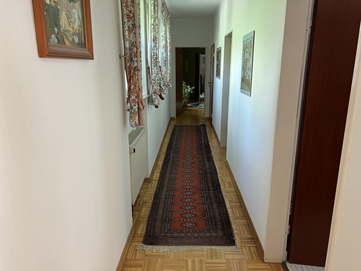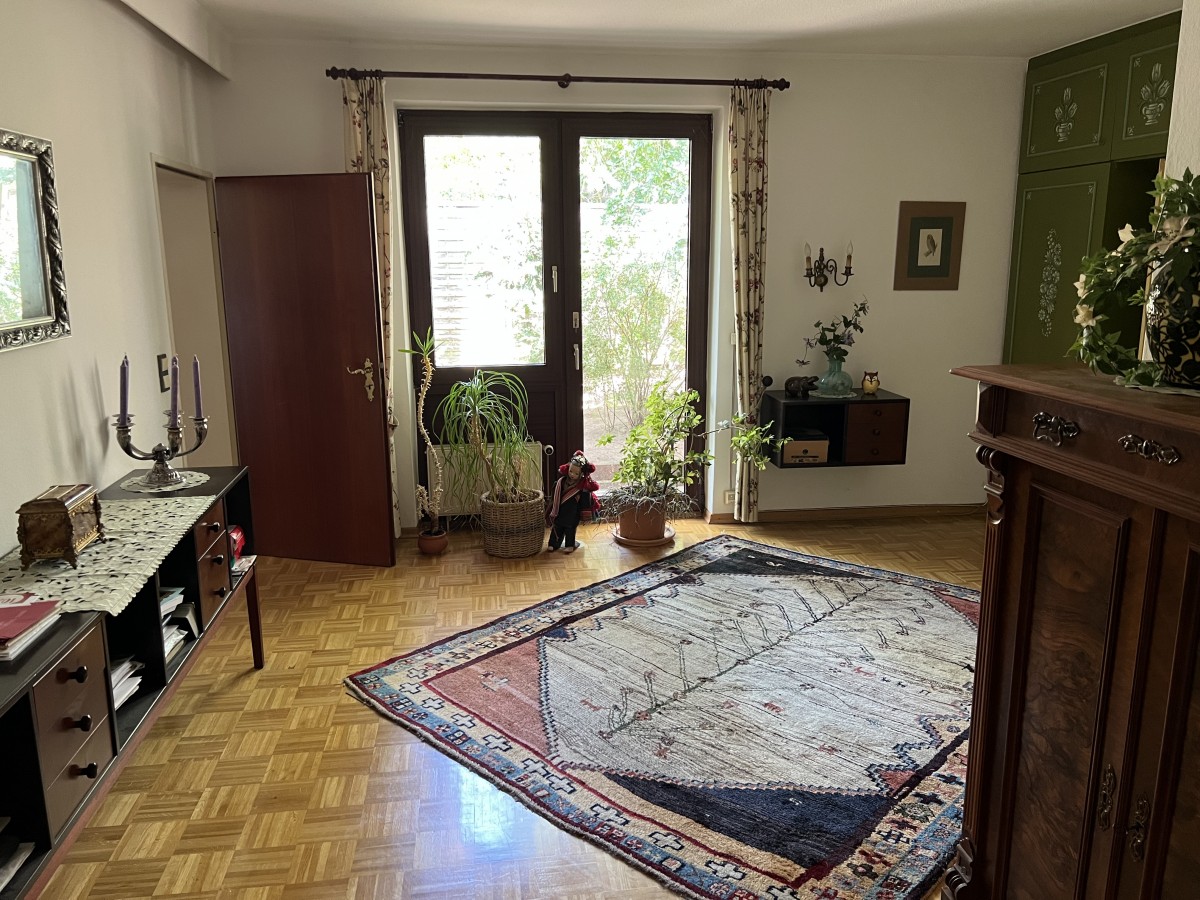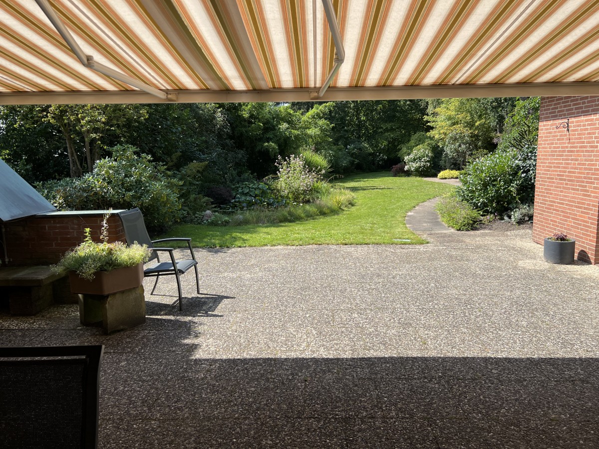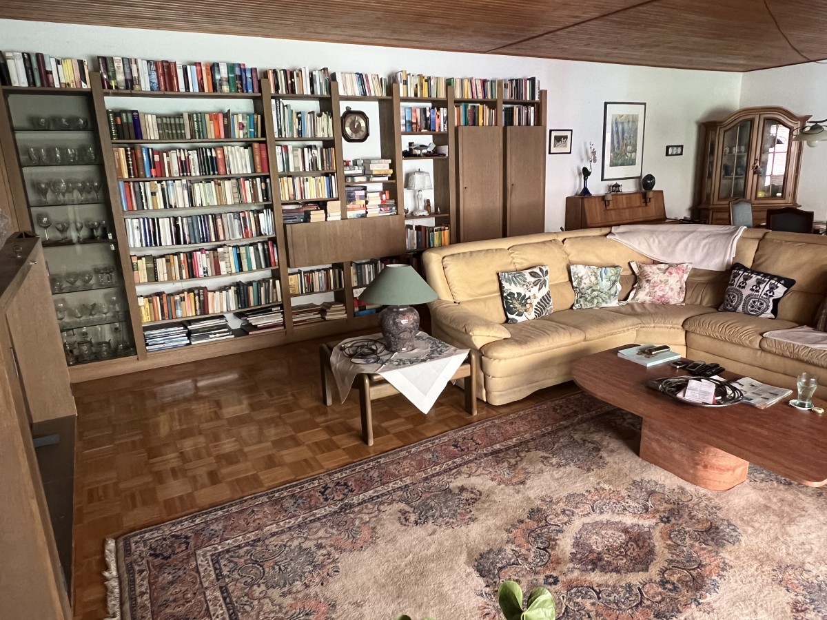 Das uneinsehbare, rund 1.416 m² große Grundstück, bietet eine naturnahe Umgebung und einen sehr großen Garten. Das ganze Gelände hat eine süd-westliche Ausrichtung und ist herrlich sonnig. Die großzügigen Räume sorgen dafür, dass sich die gesamte Wohnfläche über 210 m² erstreckt und ausreichend Platz mit sich bringt. Als Fußbodenbelag ist im Haus überwiegend ein sehr ansprechendes Stäbchenparkett verlegt und ansonsten Fliesen und im Keller Teppichböden. Zweifachverglaste Fenster befinden sich im gesamten Gebäude. Jeder Raum ist mit einem Fenstern ausgestattet, wodurch alle Räume hell und freundlich sind. Die Küche ist mit einer hellen Einbauküche, einem Cerankochfeld, einem Backofen, einem Geschirrspüler, einer Mikrowelle und einem Kühl- und Gefrierschrank ausgestattet. Ebenfalls gibt es einen Waschmaschinenanschluss. Aufgrund der Größe der Küche, findet auch eine Sitzecke bequem Platz. Die Bäder sind blau gefliest. Das geräumige Badezimmer ist mit zwei Waschbecken, einer Badewanne, einer Dusche und einem WC ausgestattet. Ebenfalls gibt es ein separates Gäste-WC. Beide Wohnräume haben bodentiefe Schiebetüren, die zum Garten führen. Der offene Kamin im kleineren Wohnbereich befindet sich in einer Ecke des Raumes. Durch die großen Fenster und die großen Fensterfronten im Wohnzimmer können Sie einen herrlichen Blick in den Garten genießen und Sie gelangen auf die großen süd-westlich ausgerichteten Terrassen. Auf der mittleren Hauptterrasse, mit rund 78 m², befindet sich ein Außenkamin für gemütliche Stunden.