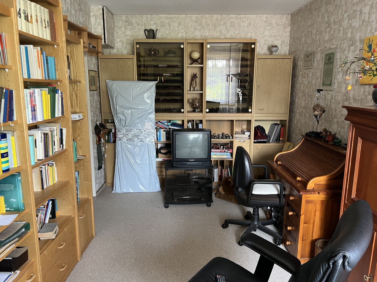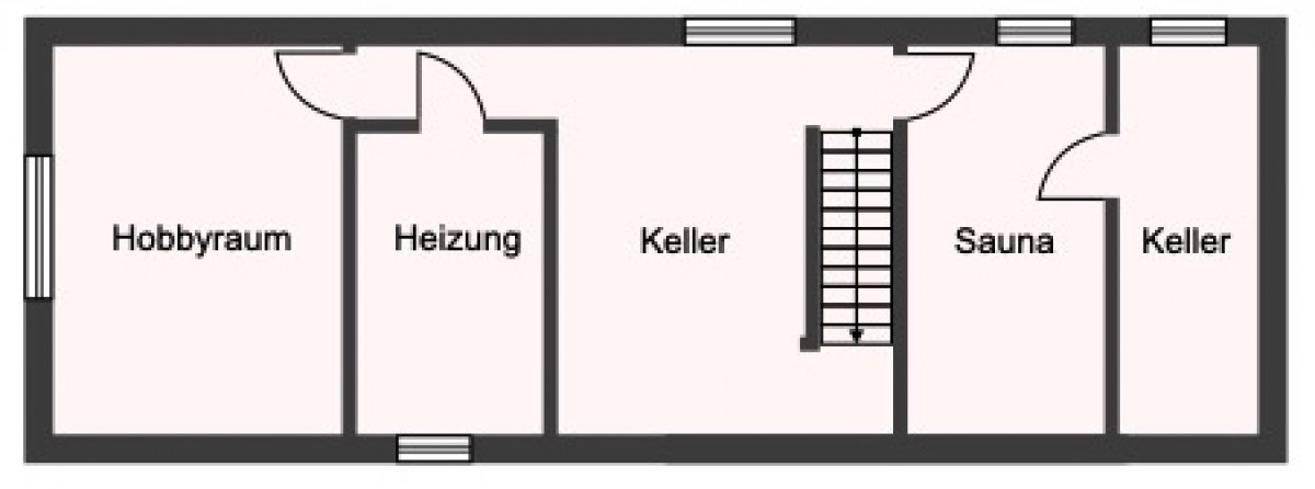 Der Bungalow ist teilweise unterkellert. Einige Räume könnten als Hobbyräume oder Abstellräume verwendet werden. Auch der Heizungsraum befindet sich im Keller sowie eine Sauna. Die Kellerräume sind mit grauem Teppichboden ausgelegt. Die Garage befindet sich direkt neben dem Bungalow.