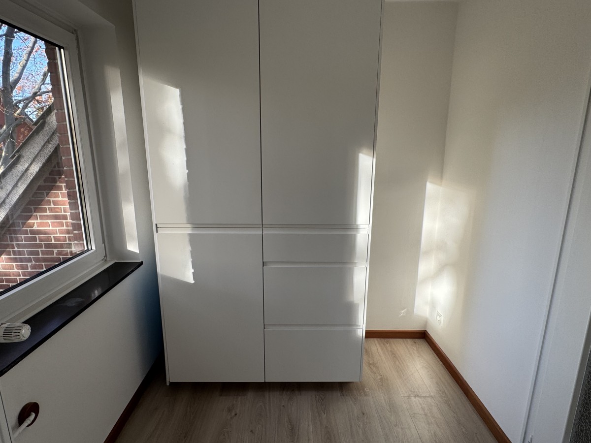 Der Fußboden der gesamten Wohnung wurde mit einem hochwertigen Laminatboden in Holzoptik versehen. Dieser Bodenbelag ist nicht nur pflegeleicht, sondern verleiht den Räumen auch eine warme und einladende Atmosphäre.