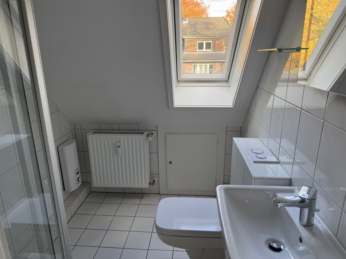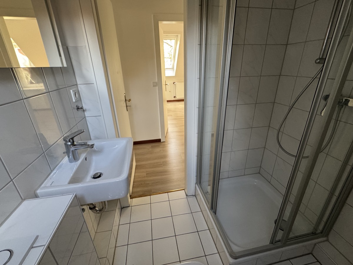 Das Duschbad wurde komplett erneuert und bietet eine moderne Ausstattung. Hochwertige Fliesen, moderne Armaturen und eine zeitgemäße Duschkabine schaffen eine angenehme Atmosphäre im Badezimmer.