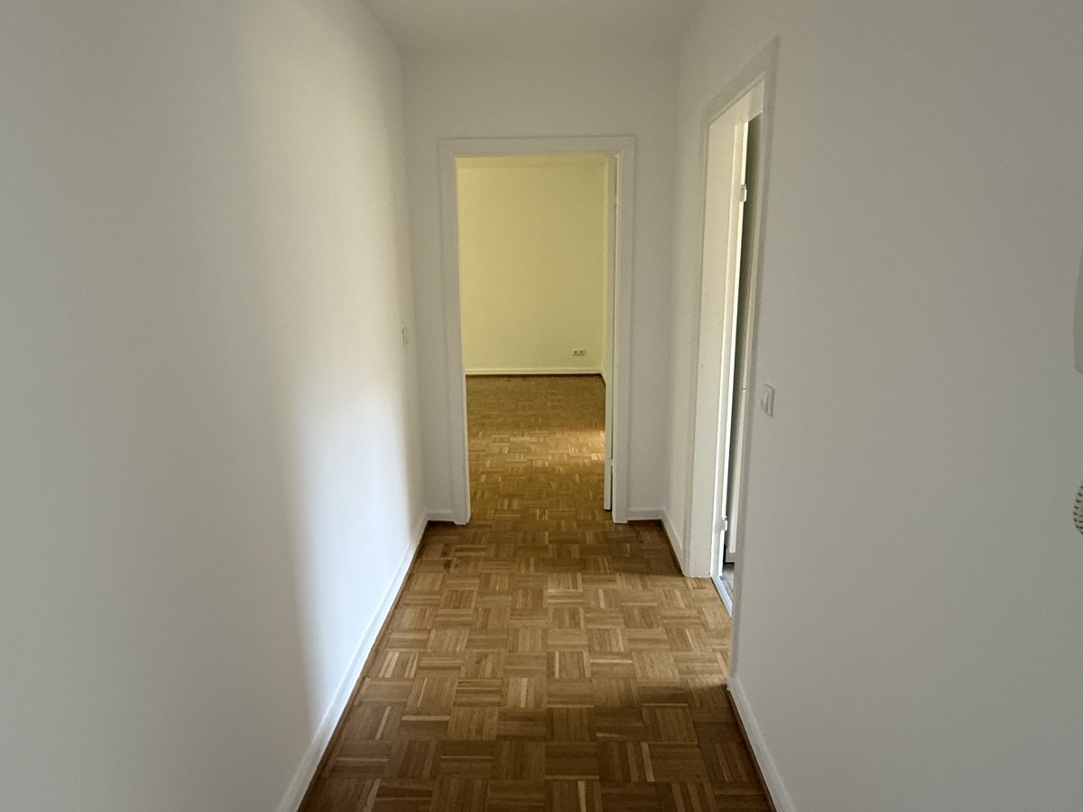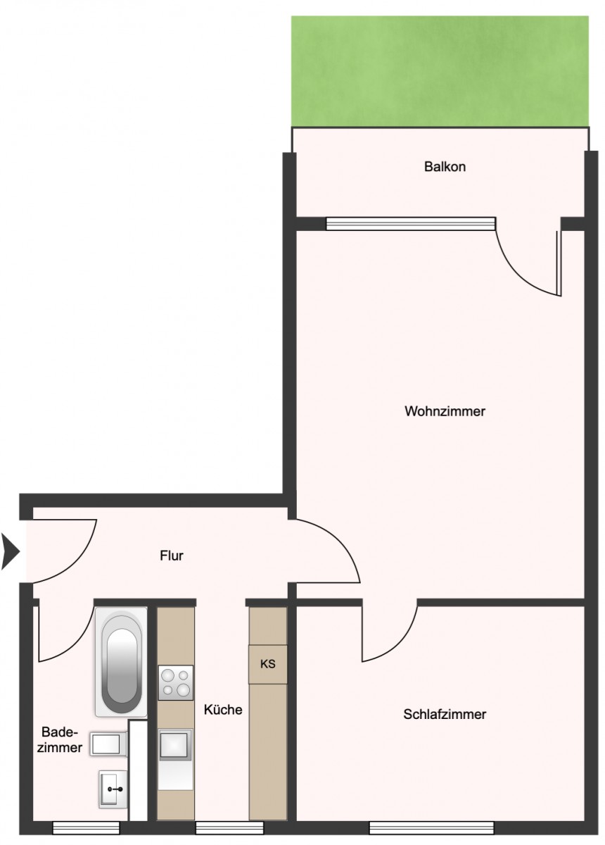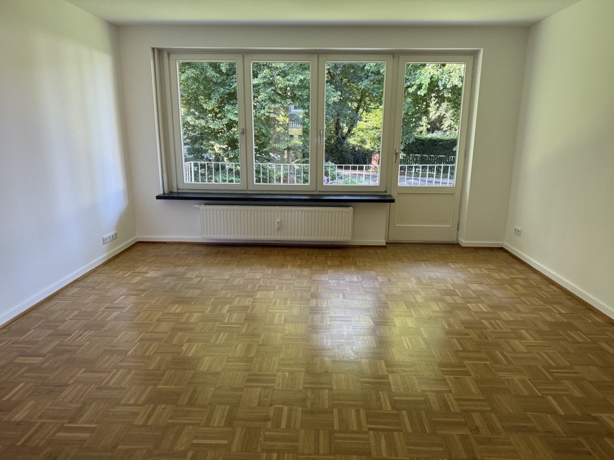 Herzlich willkommen in dieser sehr gepflegten Zwei Zimmer Wohnung im Erdgeschoss des Hauses. Beim Betreten der Wohnung gelangen Sie in den länglichen und geräumigen Flur. Der großzügige Wohnbereich ist das Herzstück der Wohnung. Helle Wände und große Fenster sorgen für eine freundliche und einladende Atmosphäre. Hier ist genügend Platz für eine gemütliche Sitzecke sowie einen großen Esstisch. Vom Wohnzimmer aus haben Sie direkten Zugang zum Balkon, der einen wunderbaren Rückzugsort und einen Ausblick ins Grüne bietet. Hier kann entspannt ein Buch gelesen oder gemütlich im Freien gefrühstückt werden. Die Wohnung hat eine Sondernutzung des Gartens des Wohnhauses, weshalb eine Öffnung des Balkons möglich wäre. Das ruhige Schlafzimmer, welches ebenfalls vom Wohnberiech aus zu begehen ist, bietet ausreichend Platz für ein großes Bett und einen Kleiderschrank. In den Zimmern sowie im Flur ist ein Stäbchenparkettboden verlegt. Die sehr stilvolle weiße Einbauküche ist mit hochwertigen Geräten ausgestattet und habt reichlich Stauraum sowie Arbeitsfläche. Sie lädt zum Kochen ein. Das Badezimmer wurde vor kurzem erneuert und ist seitdem mit einer Badewanne, einem wandhängendem WC und einem Waschbecken ausgestattet. Hochwertige Armaturen und weiße Wand- sowie graue Bodenfliesen sorgen für eine ansprechende Optik. Außerdem befindet sich hier der Anschluss für eine Waschmaschine.