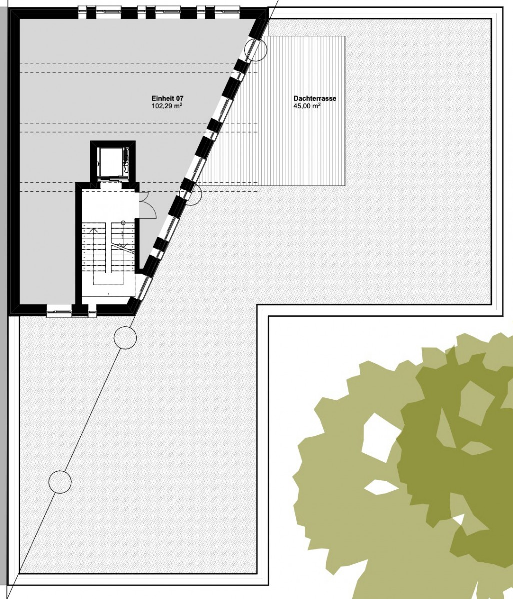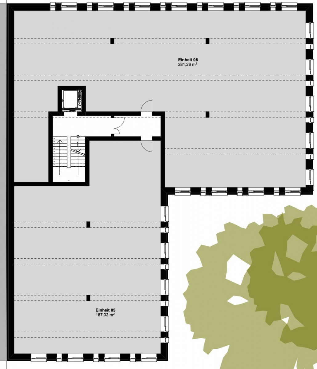 Geplant sind fünf Etagen mit insgesamt 7 Einheiten. Die Nutzflächen bewegen sich zwischen ca. 102 m² und ca. 281 m². Im Kellergeschoss ist eine Tiefgarage vorgesehen.