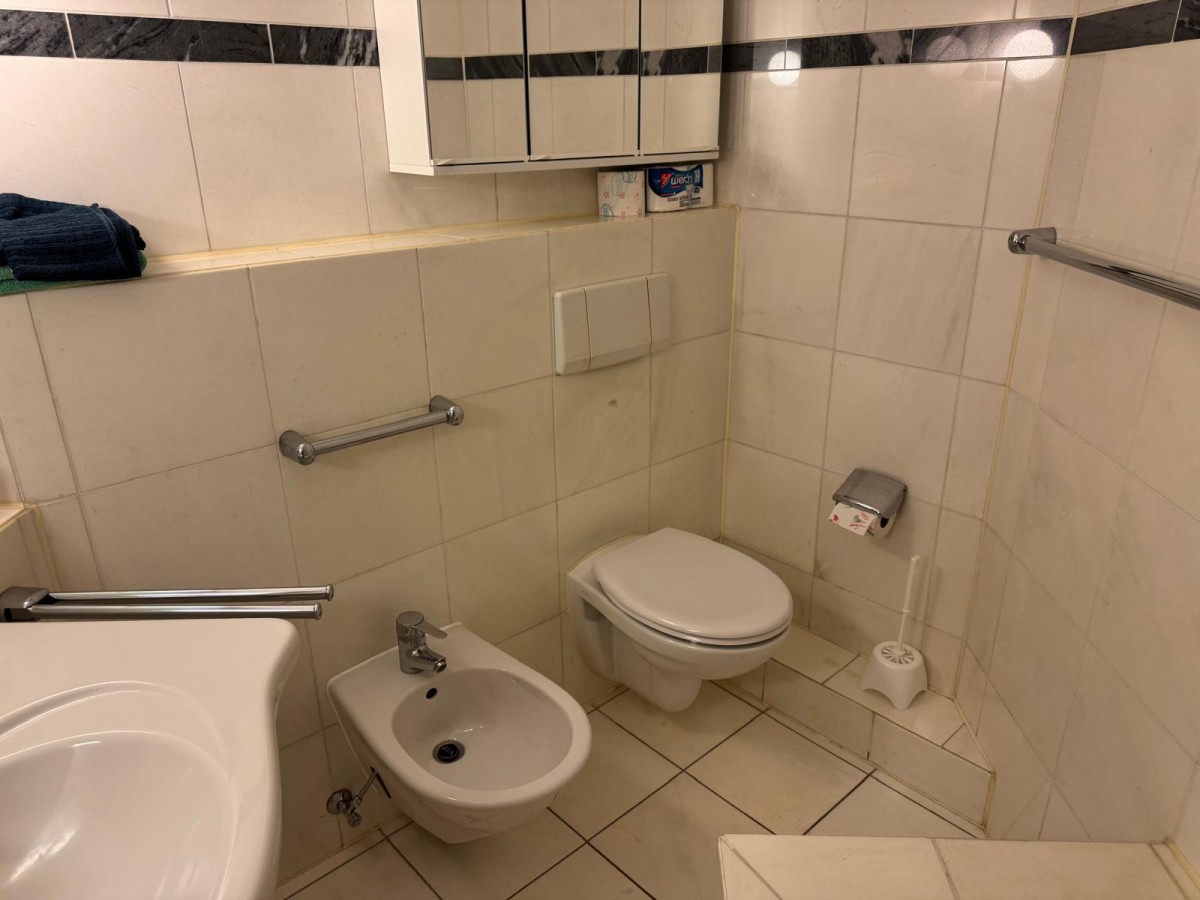 Es handelt sich um eine freundliche und sehr gepflegte Wohnanlage in moderner Bauweise mit Fahrstühlen in jedem Treppenhaus. Der Bodenbelag im Eingangsbereich des Hauses besteht aus ansprechenden Marmorfliesen und in den Geschossen aus Auslegeware. In den Jahren 2012, 2013 und 2014 wurden sämtliche Fassadenteile, die verputzt sind, alle Fenster, die Balkone, die Balkonbrüstungen und die Dachrinnen komplett neu gestrichen bzw. lackiert. 2018 und 2019 wurde das gesamte Dach der Wohnanlage erneuert.