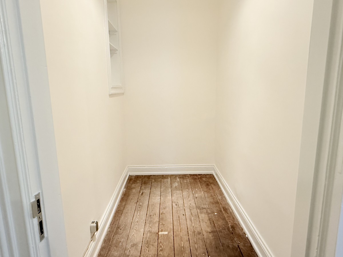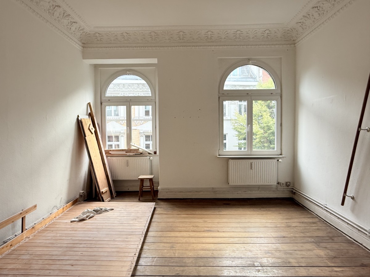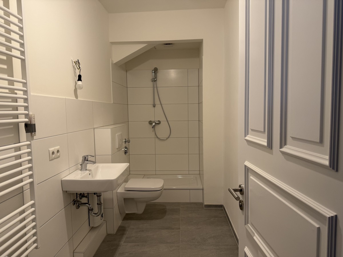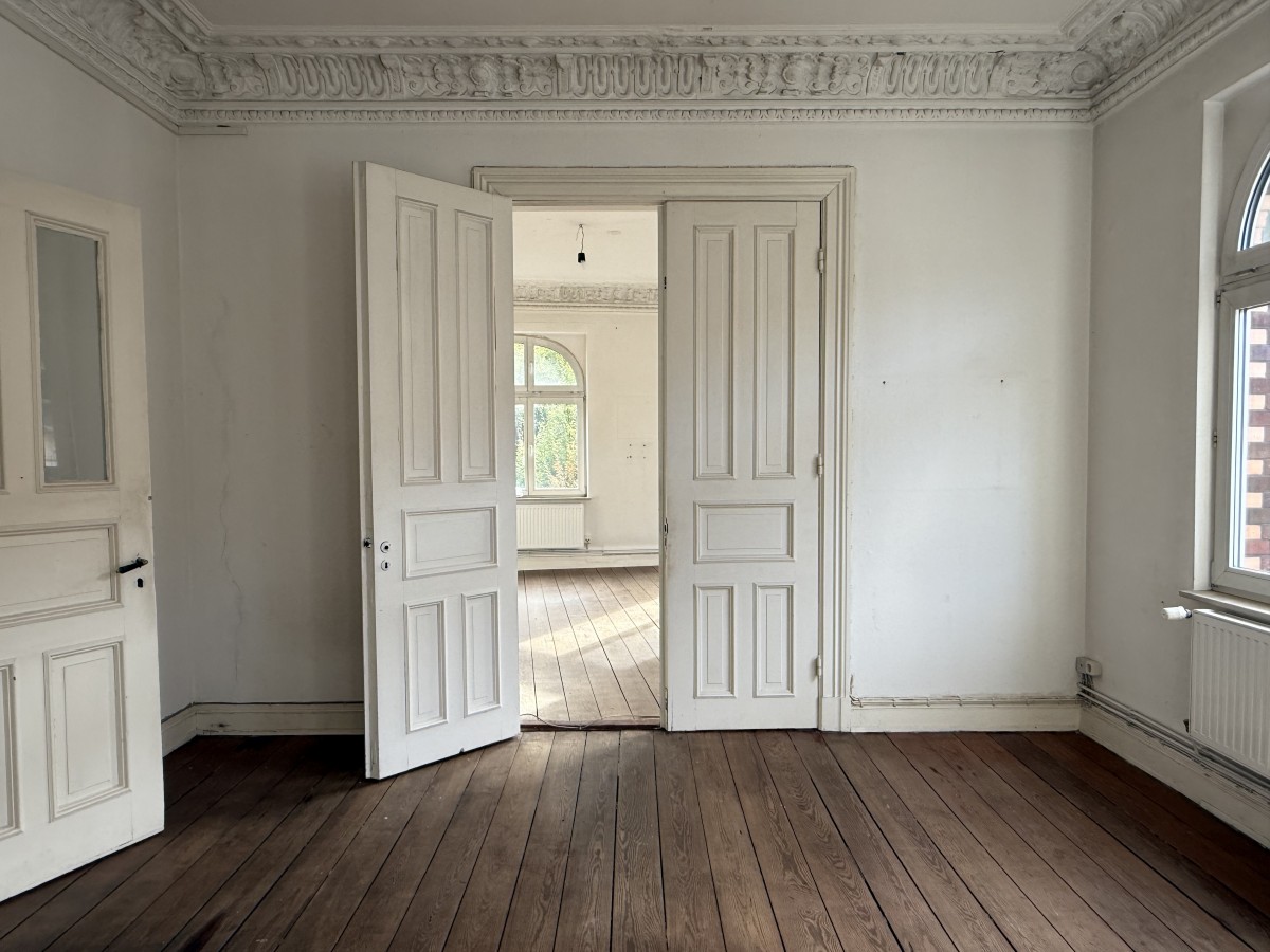 Das Wohn- und Esszimmer ist mit einer Flügeltür verbunden. Das Wohnzimmer ist nicht vom Flur aus zu begehen. Die Küche wird ohne Einbauten vermietet. Das Duschbad wurde gerade saniert. Die Wohnung verfügt über einen Abstellraum im Flur.
