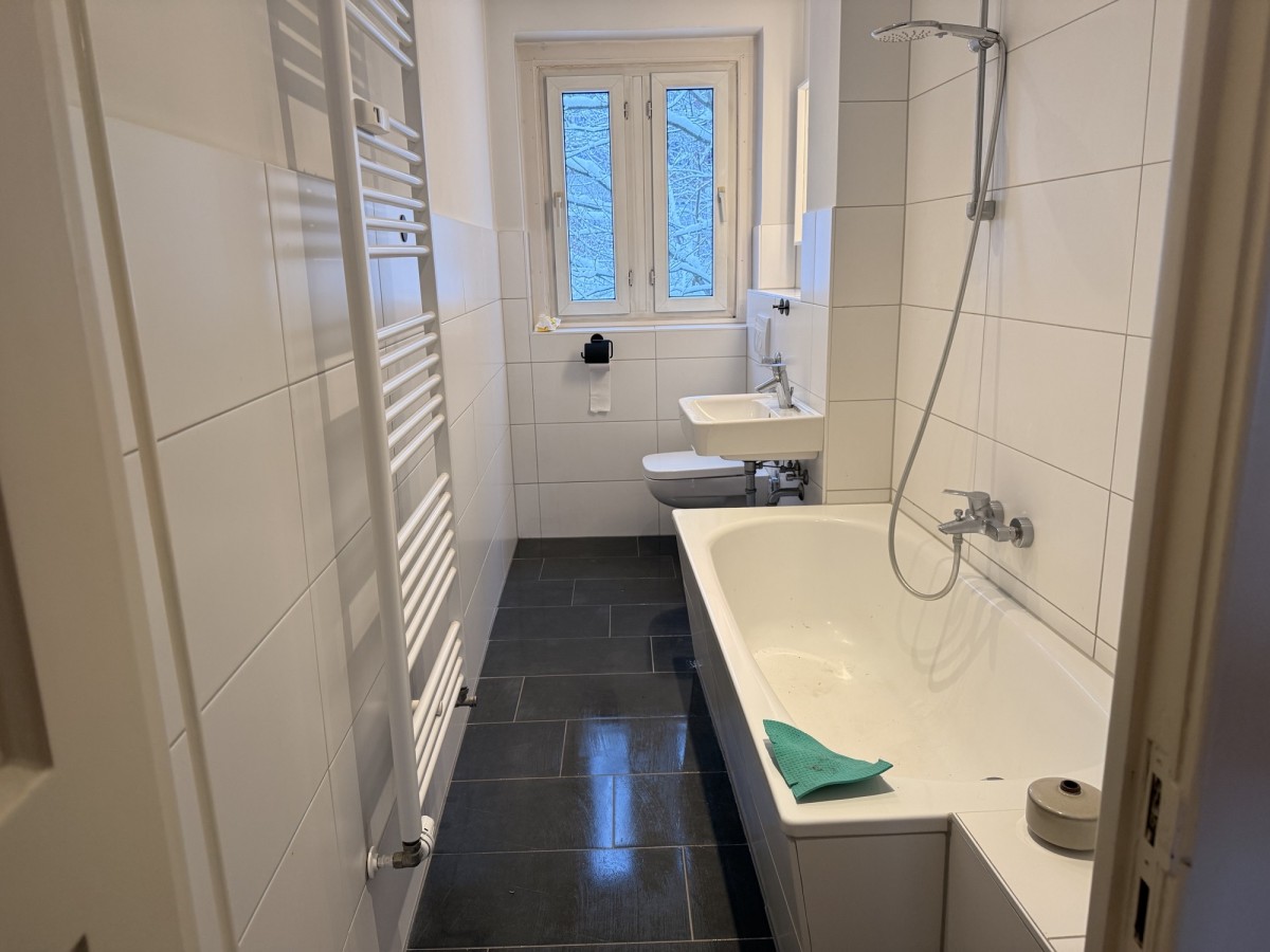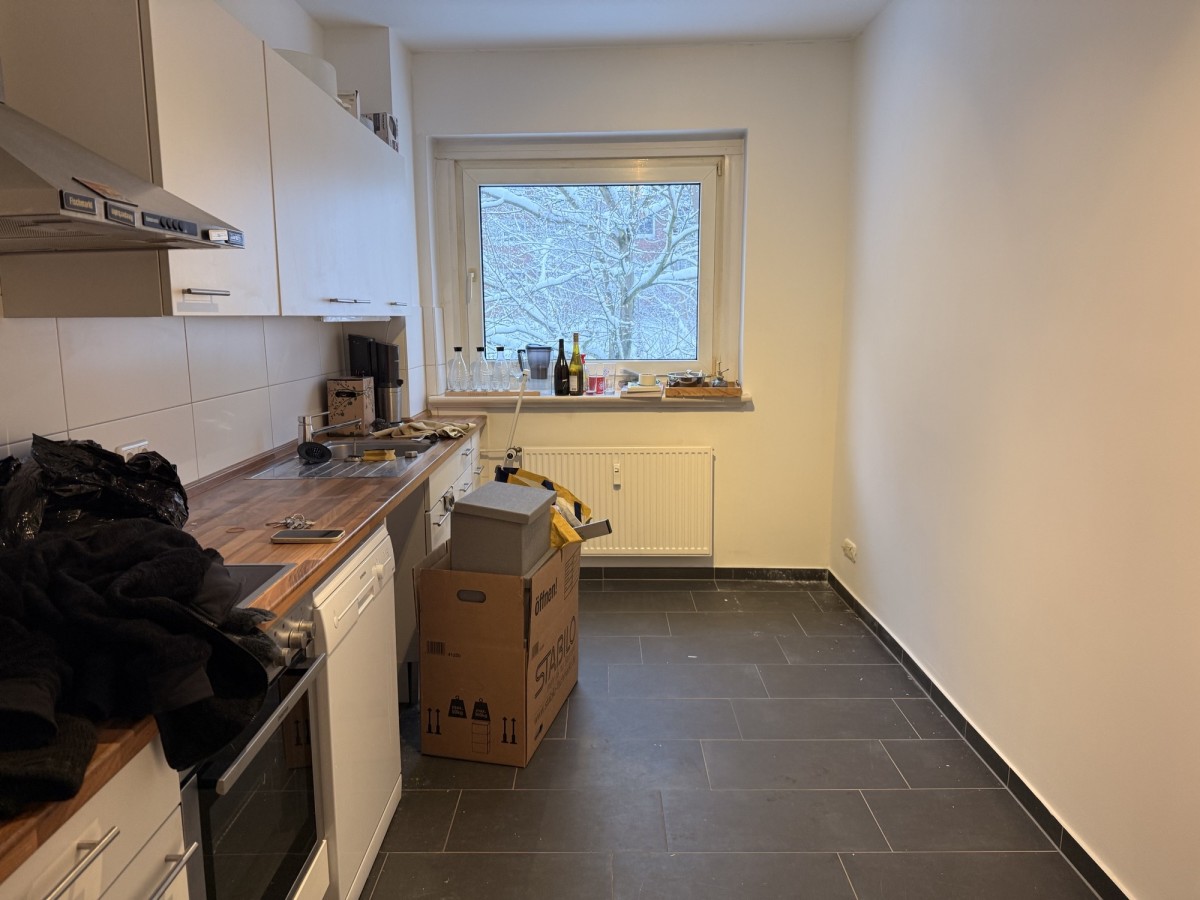 Diese 2,5-Zimmer-Wohnung befindet sich im 3. Obergeschoss des Hauses. Vom Flur der Wohnung gehen alle Räume ab. Das Vollbad ist weiß gefliest und hat ein Fenster. Die Wohnung wird mit einer Einbauküche vermietet.