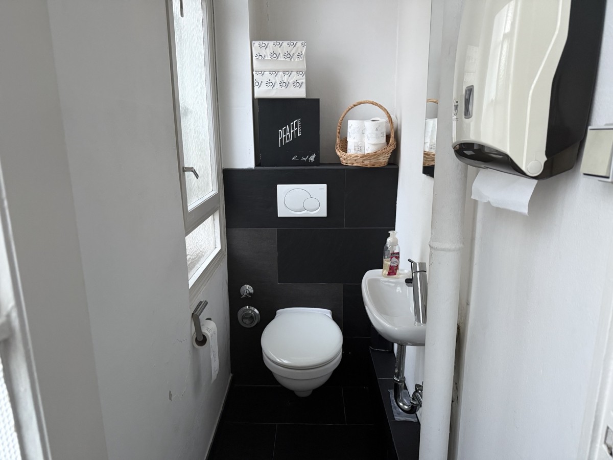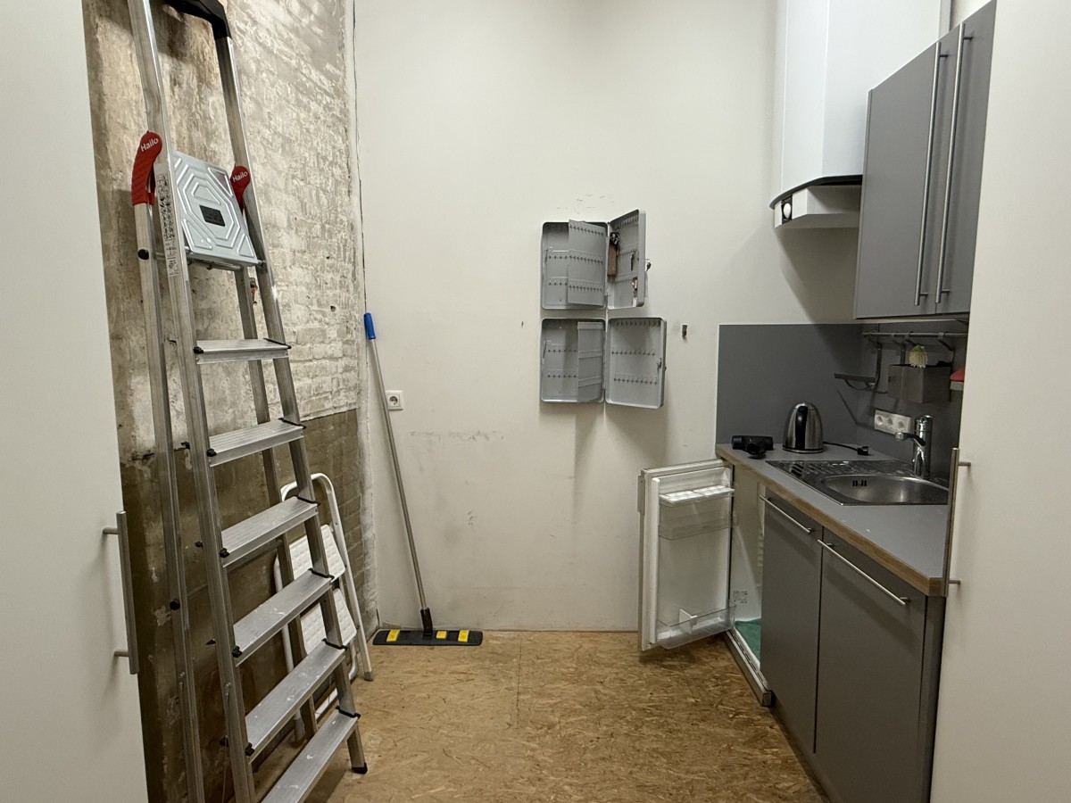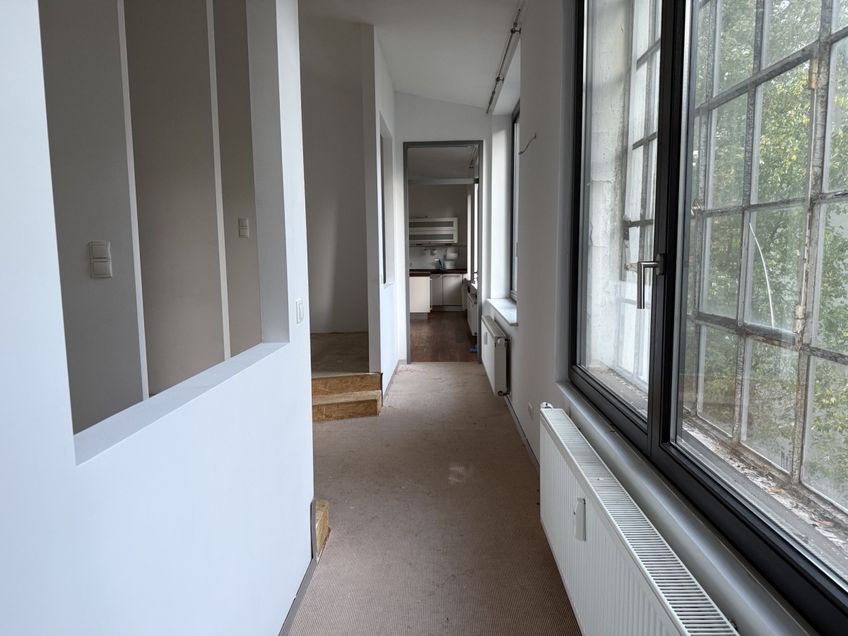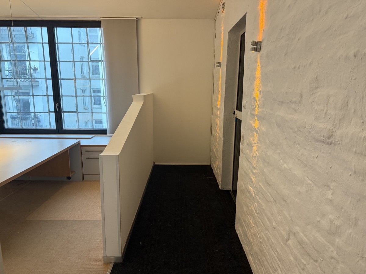 Die Bürofläche erstreckt sich über das gesamte 2. Obergeschoss des Hauses. Verteilt auf mehrere Räume und Nebenflächen bietet die Einheit vielfältige Nutzungsmöglichkeiten. Die vorhanden Leichtbauwände können ggf. entfernt und die Fläche somit individuell gestaltet werden. Die auf den Fotos zu sehenden Möbel und Einrichtungsgegenstände können unentgeltlich vom Mieter übernommen werden. Es sind eine Einbauküche mit Kochinsel sowie eine zusätzliche Teeküche vorhanden, ebenso ein Duschbad. Die zwei getrennten WC’s befinden sich außerhalb der Fläche im Treppenhaus.