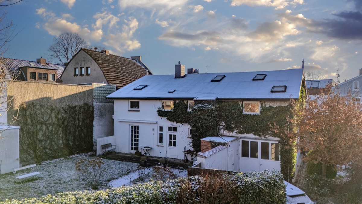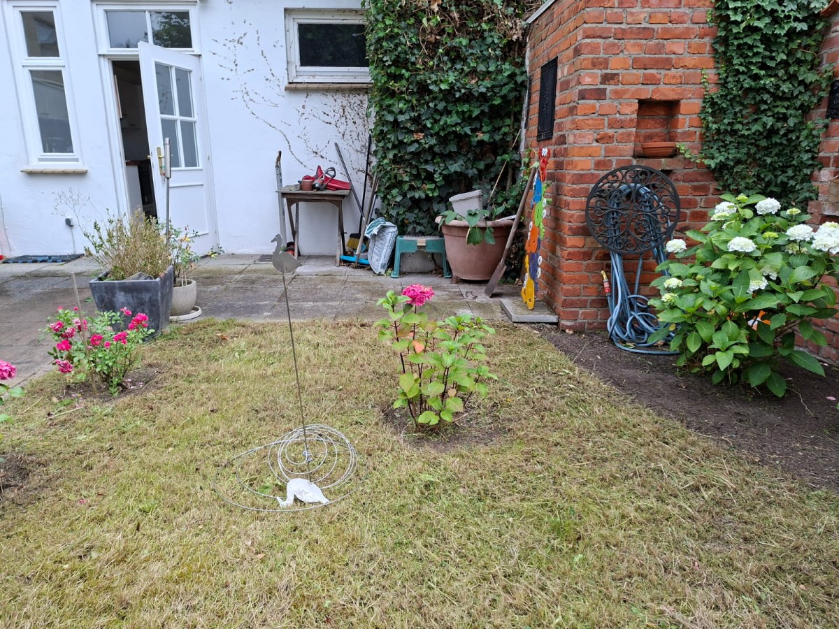 Der rechte Teil des Erdgeschosses beherbergt aktuell den Wohn- und Essbereich, der sich angenehm zur Gartenseite öffnet. Von hier aus – ebenso wie von der Küche – gelangt man direkt auf die Terrasse und in den liebevoll eingewachsenen Garten. Dieser ist uneinsehbar, herrlich privat und ein echtes Kleinod: ein Ort zum Durchatmen, Entspannen und Genießen.