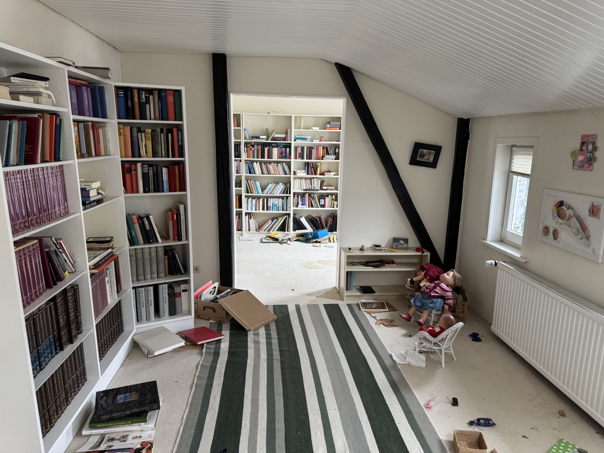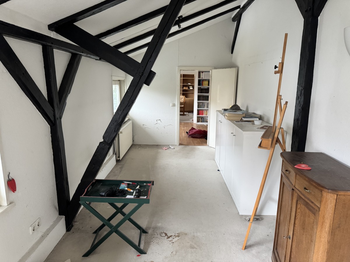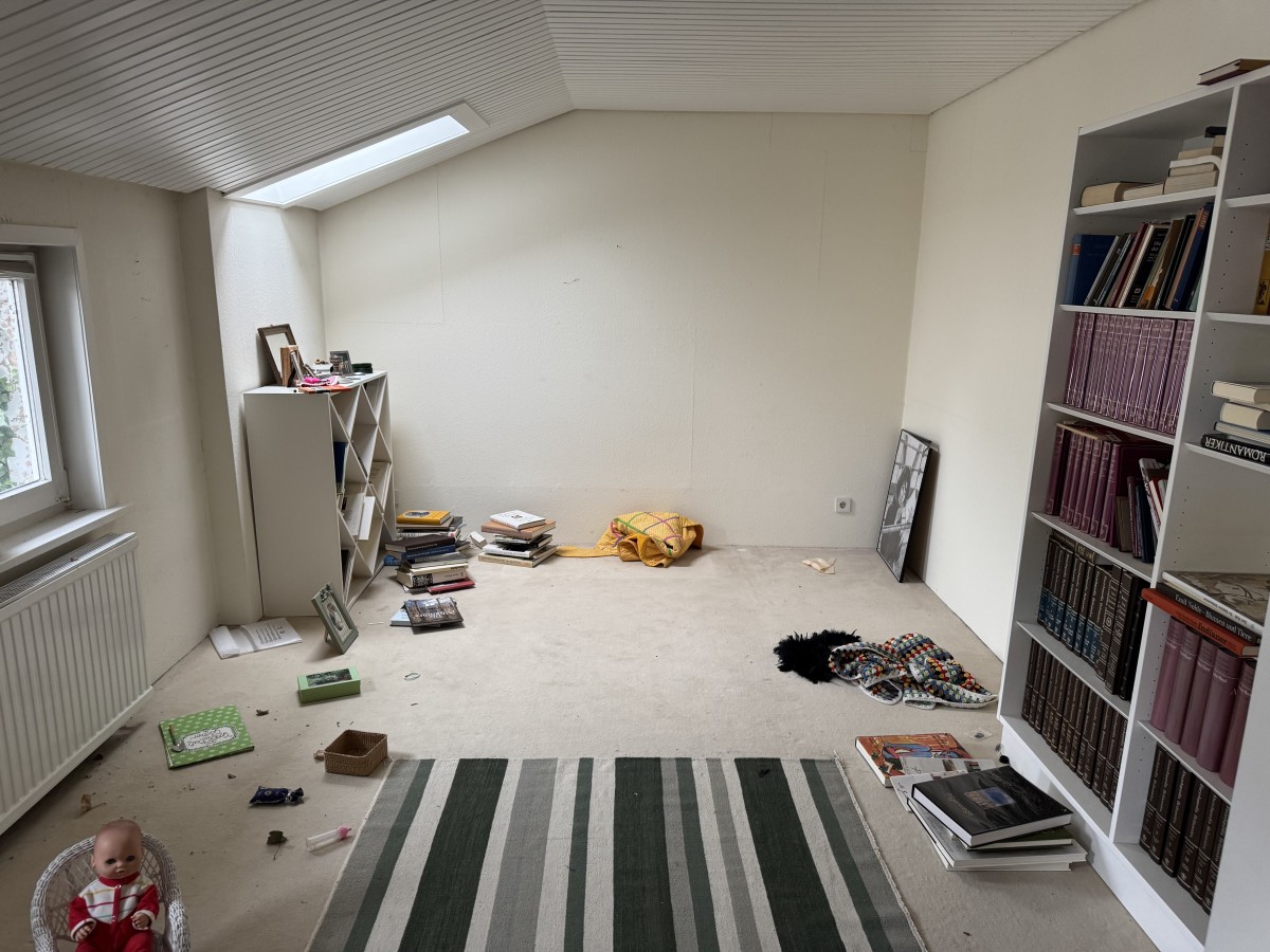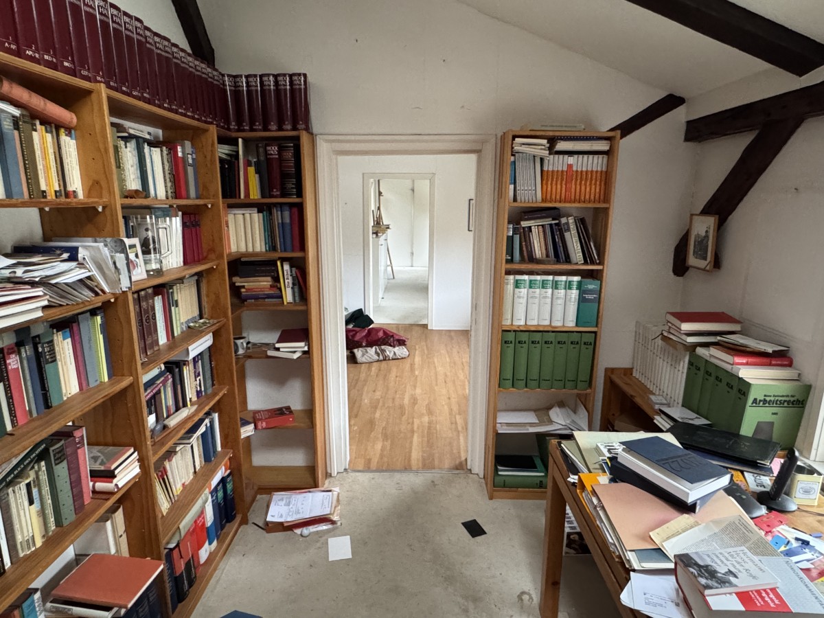Über die Treppe im Eingangsbereich erreicht man das Dachgeschoss. Links befindet sich hier der größte Raum des Hauses: hell, offen bis unters Dach und mit einer beeindruckenden Raumwirkung. Dieser Bereich eignet sich ideal als zusätzlicher Wohnraum, Atelier oder als besonders großzügiges Schlafzimmer. Weitere vielseitig nutzbare Räume schließen sich an. Ergänzt wird das Dachgeschoss durch ein weiteres Duschbad.