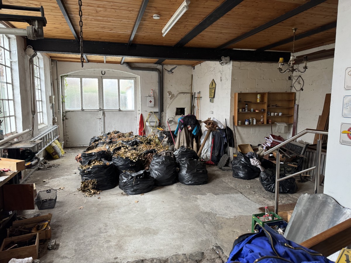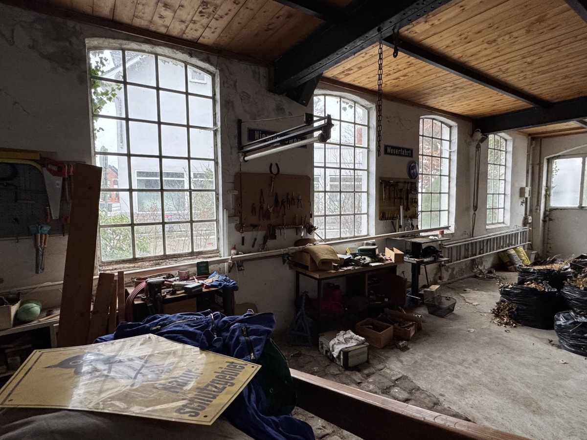 Ein ganz besonderes Herzstück ist der linke Gebäudeteil: die ehemalige Schmiede. Mit ihrer ursprünglichen Struktur, den hohen Räumen und dem authentischen Charakter drängt sich förmlich der Gedanke auf, diesen Bereich unbedingt bewohnbar zu machen. Hier ließe sich ein außergewöhnlicher Lebensraum schaffen – offen, individuell und voller Atmosphäre, wie man ihn heute kaum noch findet.