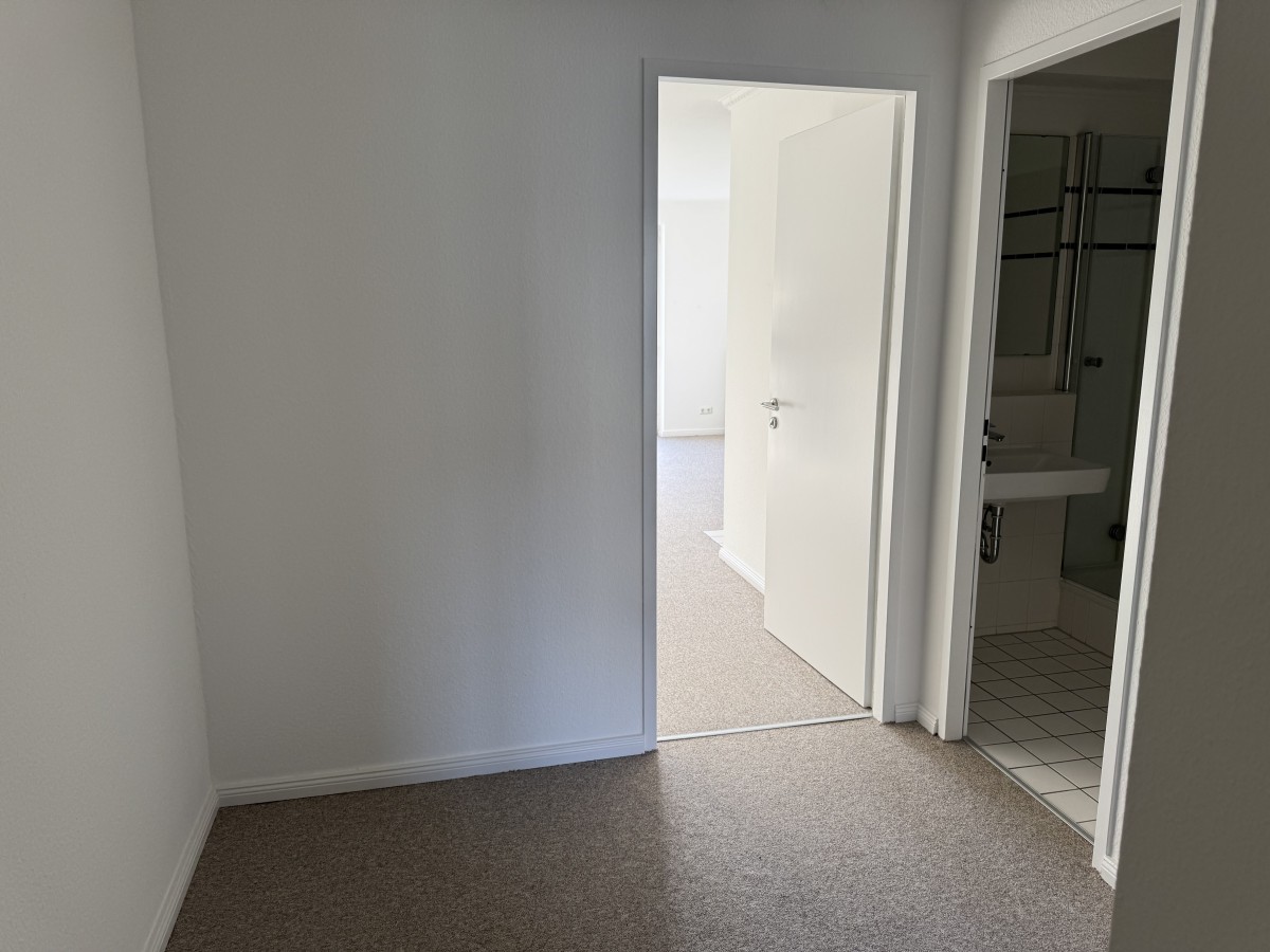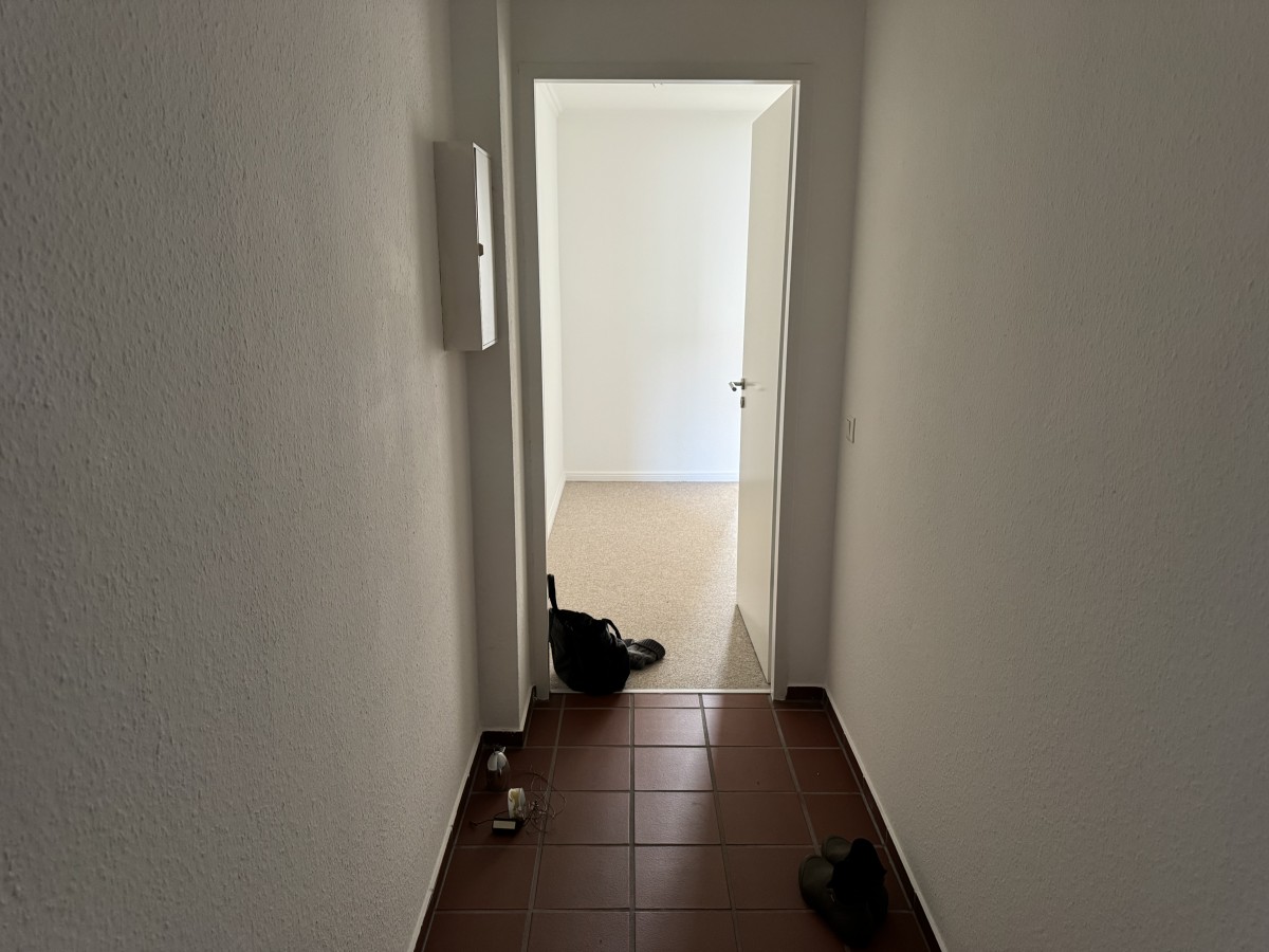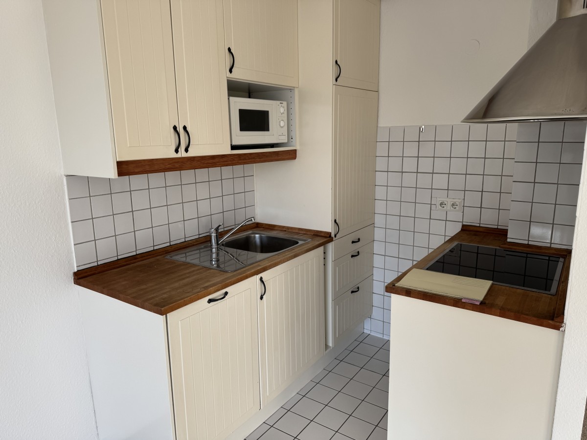 Die Küche ist mit einer Küchenzeile ausgestattet. Die Wohnung wurde gerade mit einem neuen Teppichboden versehen.