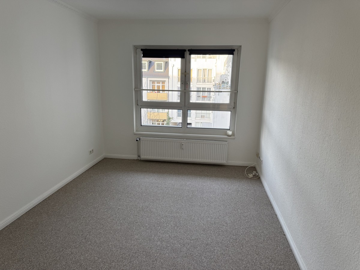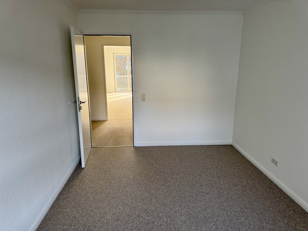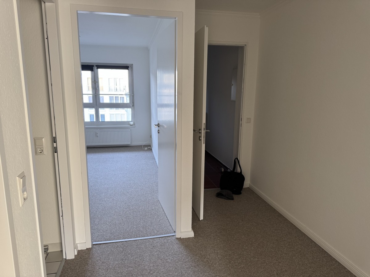 Die Küche ist mit einer Küchenzeile ausgestattet. Die Wohnung wurde gerade mit einem neuen Teppichboden versehen.