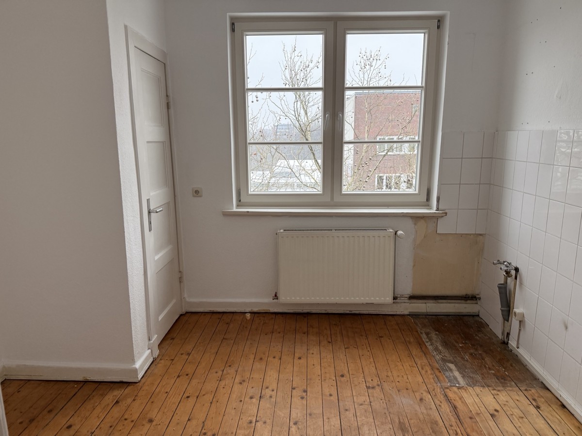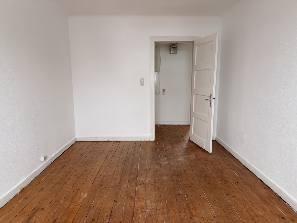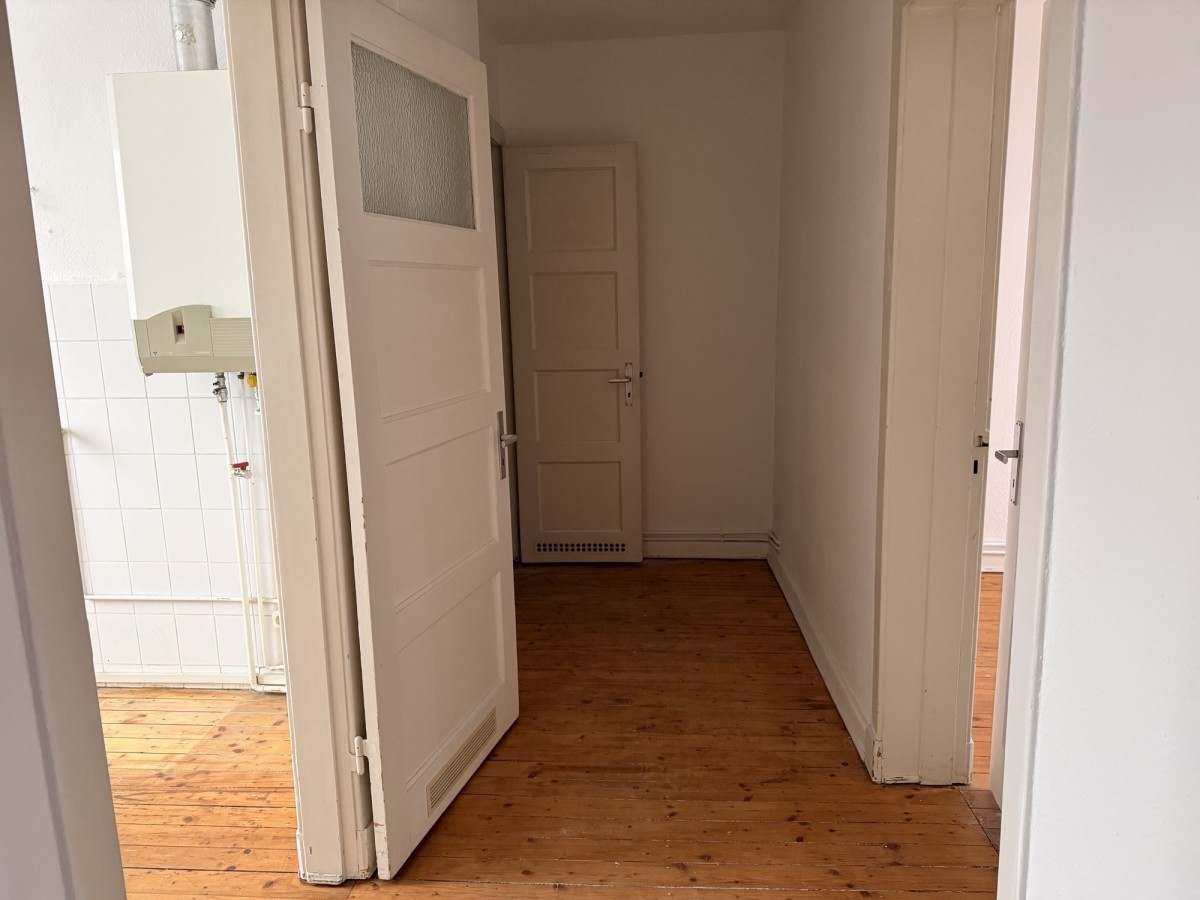 Diese 2-Zimmer-Wohnung liegt im 4. Obergeschoss des Hauses. Ein Aufzug ist NICHT vorhanden. Vom Flur aus gelangt man in alle Räume. Beide Zimmer der Wohnung liegen ruhig nach hinten raus. In den Zimmern und im Flur liegt ein Holzdielenboden. Die Küche wird ohne Einbauten vermietet.