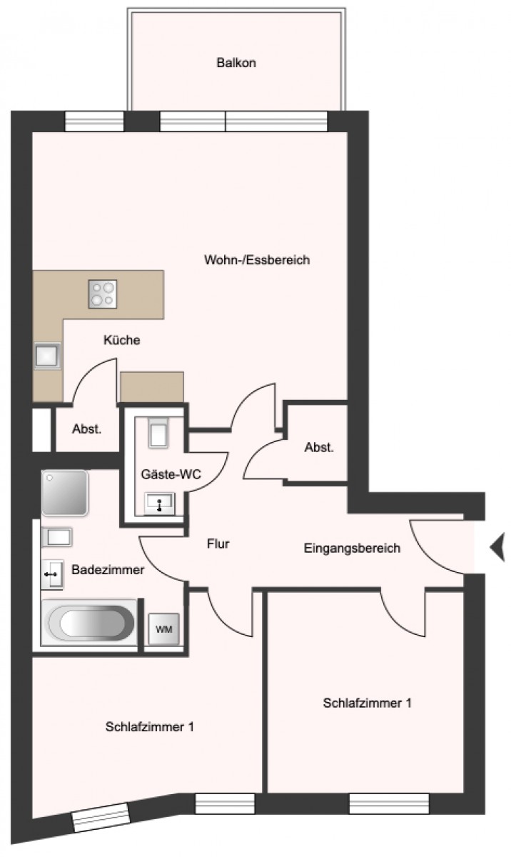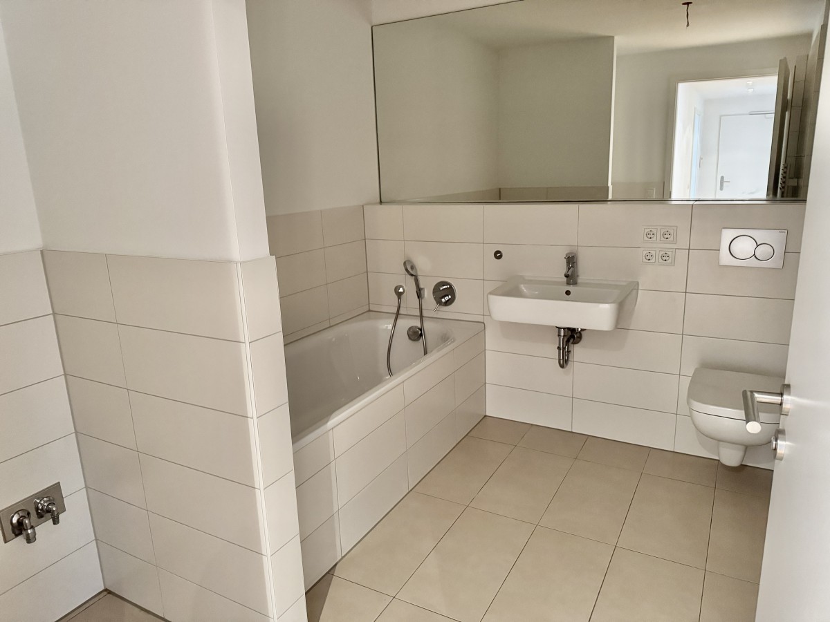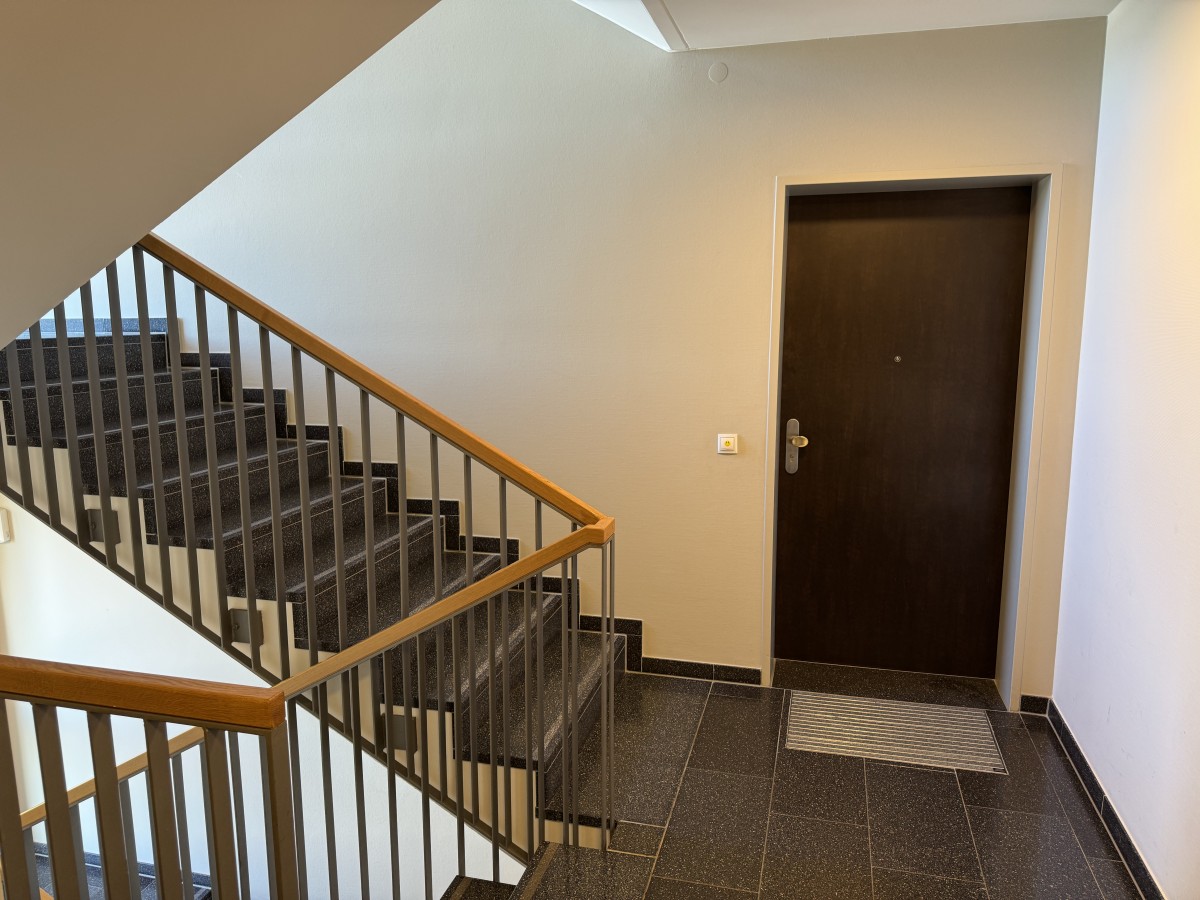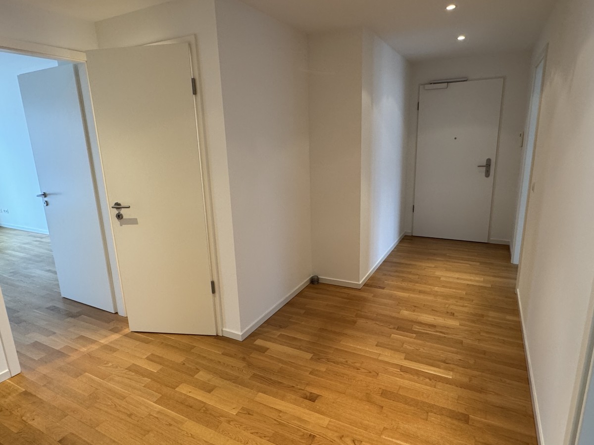 Der einladende Eingangsbereich und der großzügige Flur vermitteln einem sofort einen angenehmen und freundlichen Eindruck. Man fühlt sich sehr willkommen und die angenehme Beleuchtung durch die Downlights, tut ihr übriges. Vom Flur aus linker Hand liegen die beiden Schlafzimmer zum Grandweg, daneben das angenehm geräumige Badezimmer, gefolgt vom Gäste-WC. Nach hinten raus liegt das großzügige Wohn- und Esszimmer, mit der schönen offenen Küche und dem einladenden Balkon. Hier möchte man es sich bei entsprechendem Wetter sofort bequem machen. Insgesamt sind es drei wunderschöne Zimmer. Neben dem Wohn- und Esszimmer kann man vom Flur aus einen der beiden praktischen Abstellräume nutzen.