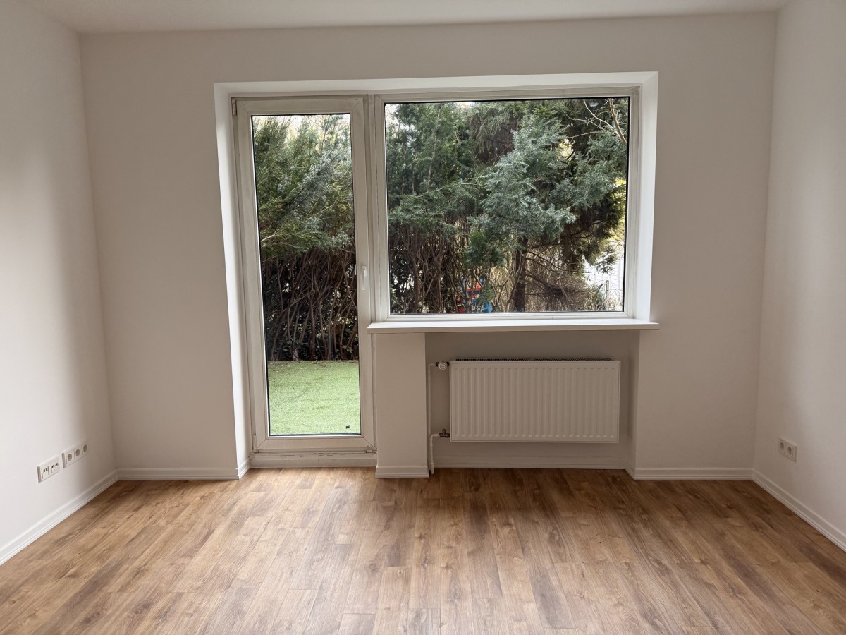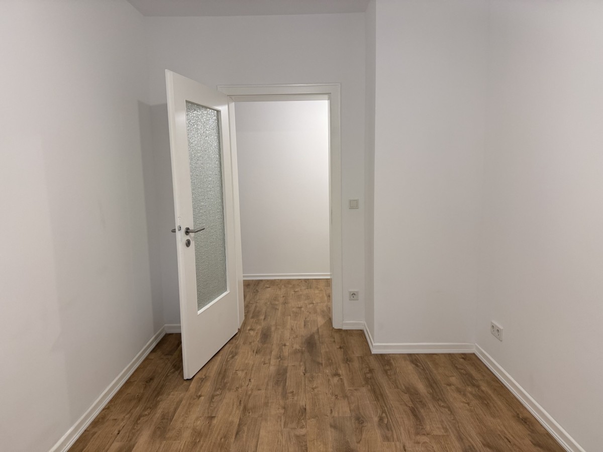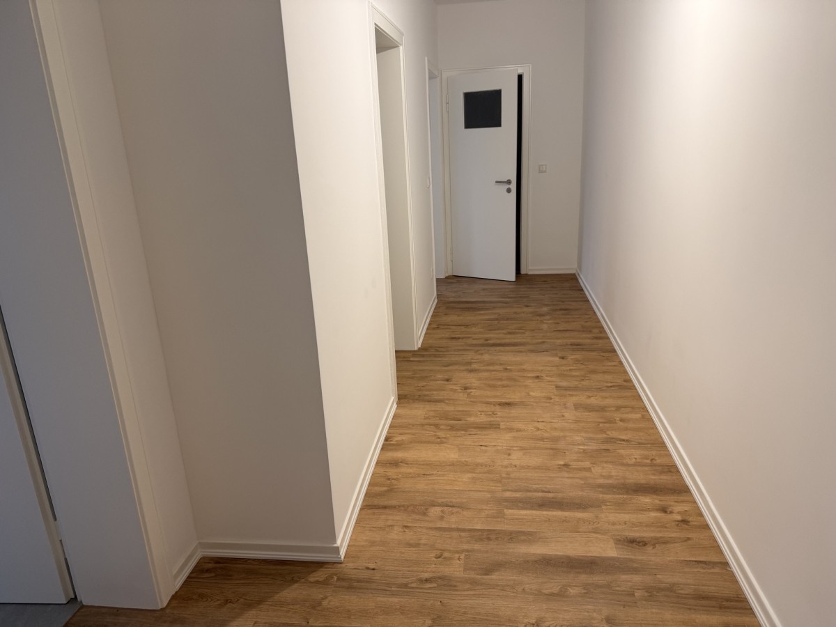 Die Wohnung befindet sich im Erdgeschoss des um 1968 erbauten Hauses. Bei dem Betreten der Wohnung gelangt man in den Flur, von welchem alle Räume abgehen. Vom Wohnzimmer aus gelangt man auf die Terrasse. Das Duschbad ist weiß gefliest.