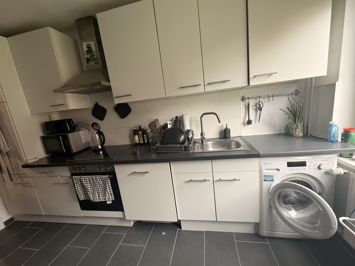 Beim Betreten der Wohnung gelangt man in den Flur, von dem alle Räume der Wohnung abgehen. Der Flur ist ebenso wie die Zimmer mit einem Laminatboden versehen. Die Küche ist mit einer Einbauküche ausgestattet. Das Bad ist hell gefliest und hat ein Fenster. Es gibt KEINEN Balkon.